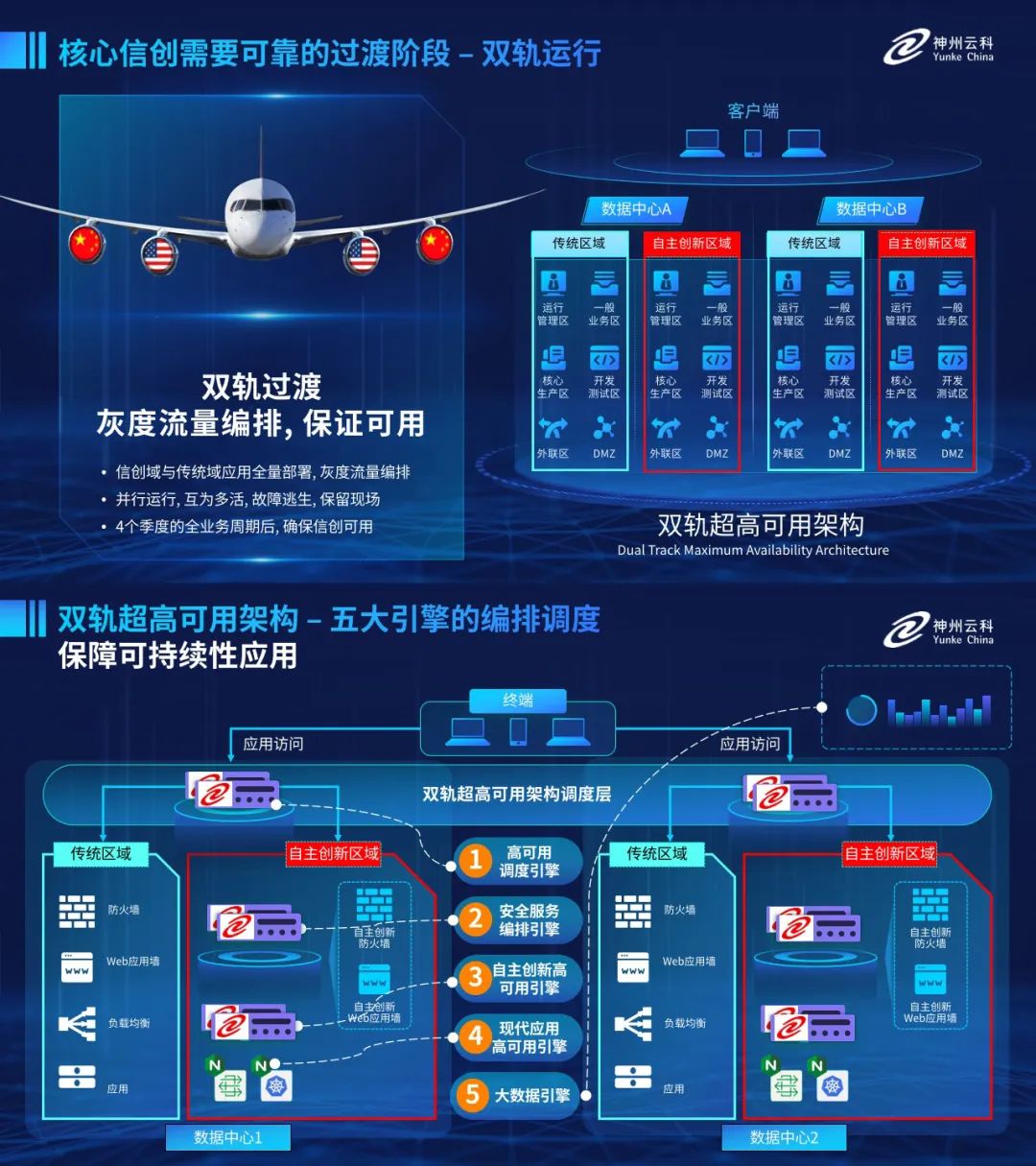 为助力金融业务高质量发展,更好地应对数字经济时代对可持续性的高要求,实现“信创”与“数字化”齐头并进,金年会创新性的推出了核心信创·双轨过渡的超高可用架构。该架构在双活数据中心的分区调度基础上,增加信创域和非信创域的分域调度,实行信创域与传统域应用全量部署,使双中心运营变为双中心四区域并行运行,互为多活,将“0到1”的单轨建设道路变为分区分域协同的多活双轨超高可用架构。帮助客户在新架构下,保障“信创”的同时解决性能瓶颈,提升稳定性,保证应用可持续性,最终实现信创区域和非信创区域的平滑过渡,完成国产化替代目标。